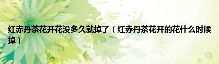 大家好,伊人来为大家解答以上问题。红赤丹茶花开花没多久就掉了,红赤丹茶花开的花什么时候掉很多人还不知道,现在让我们一起来看看吧!