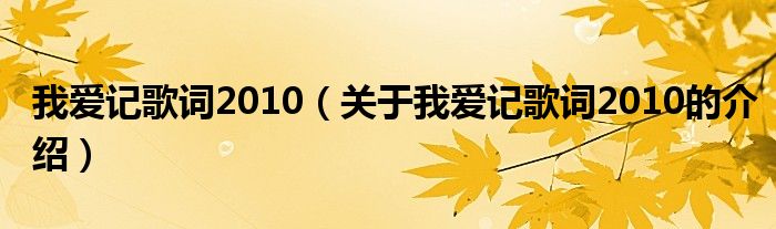 大家好,小新来为大家解答以上的问题。我爱记歌词2010,关于我爱记歌词2010的介绍很多人还不知道,现在让我们一起来看看吧!1、超级领唱是浙江卫视《我爱记歌词》节目中对领唱歌手的称呼。本文到此结束,希望对大家有所帮助。