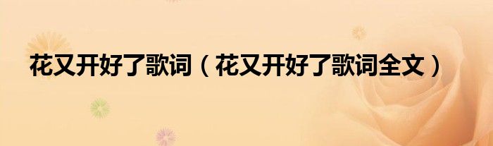 大家好,伊人来为大家解答以上问题。花又开好了歌词,花又开好了歌词全文很多人还不知道,现在让我们一起来看看吧!