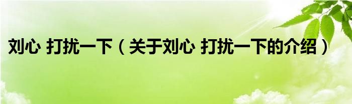 大家好,小新来为大家解答以上的问题。刘心 打扰一下,关于刘心 打扰一下的介绍很多人还不知道,现在让我们一起来看看吧!