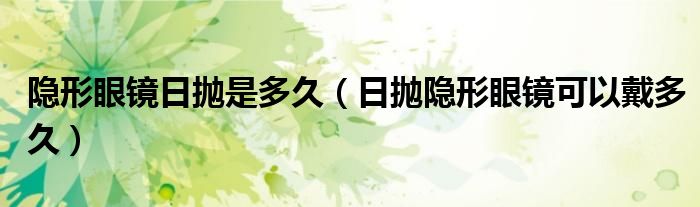 大家好,伊人来为大家解答以上问题。隐形眼镜日抛是多久,日抛隐形眼镜可以戴多久很多人还不知道,现在让我们一起来看看吧!
