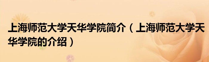 大家好,伊人来为大家解答以上问题。上海师范大学天华学院简介,上海师范大学天华学院的介绍很多人还不知道,现在让我们一起来看看吧!