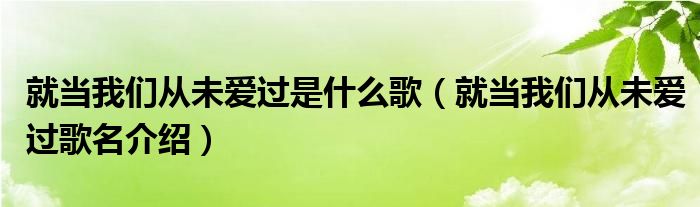 大家好,伊人来为大家解答以上问题。就当我们从未爱过是什么歌,就当我们从未爱过歌名介绍很多人还不知道,现在让我们一起来看看吧!