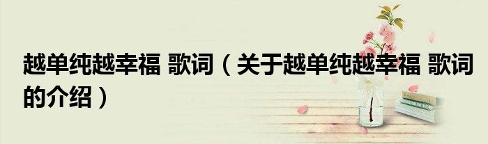 大家好,小新来为大家解答以上的问题。越单纯越幸福 歌词,关于越单纯越幸福 歌词的介绍很多人还不知道,现在让我们一起来看看吧!1、《害怕孤独》是一首流行歌曲。2、演唱者安蕾尔。本文到此结束,希望对大家有所帮助。