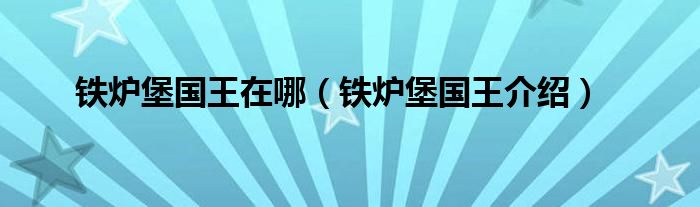大家好,伊人来为大家解答以上问题。铁炉堡国王在哪,铁炉堡国王介绍很多人还不知道,现在让我们一起来看看吧!