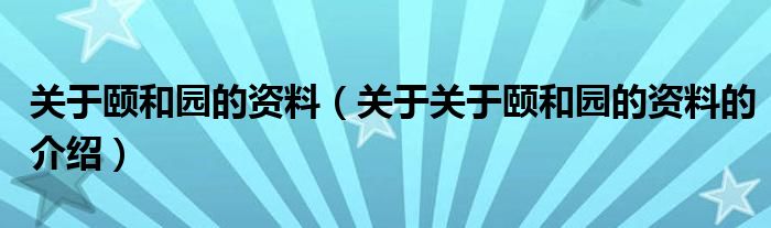 大家好,小新来为大家解答以上的问题。关于颐和园的资料,关于关于颐和园的资料的介绍很多人还不知道,现在让我们一起来看看吧!