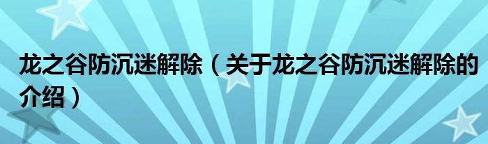 大家好,小新来为大家解答以上的问题。龙之谷防沉迷解除,关于龙之谷防沉迷解除的介绍很多人还不知道,现在让我们一起来看看吧!