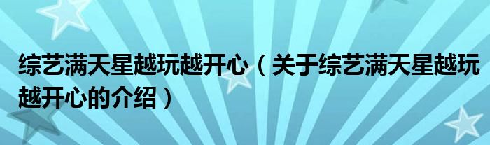 大家好,小新来为大家解答以上的问题。综艺满天星越玩越开心,关于综艺满天星越玩越开心的介绍很多人还不知道,现在让我们一起来看看吧!