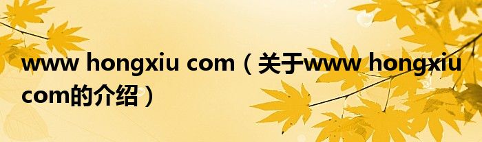 大家好,小新来为大家解答以上的问题。www hongxiu com,关于www hongxiu com的介绍很多人还不知道,现在让我们一起来看看吧!