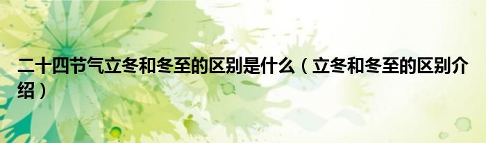 大家好,伊人来为大家解答以上问题。二十四节气立冬和冬至的区别是什么,立冬和冬至的区别介绍很多人还不知道,现在让我们一起来看看吧!