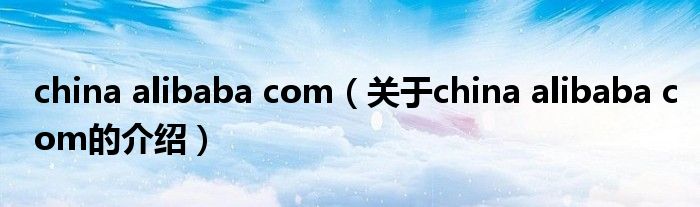 大家好,小新来为大家解答以上的问题。china alibaba com,关于china alibaba com的介绍很多人还不知道,现在让我们一起来看看吧!