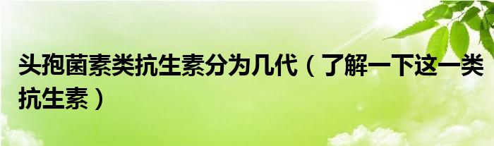 大家好,伊人来为大家解答以上问题。头孢菌素类抗生素分为几代,了解一下这一类抗生素很多人还不知道,现在让我们一起来看看吧!