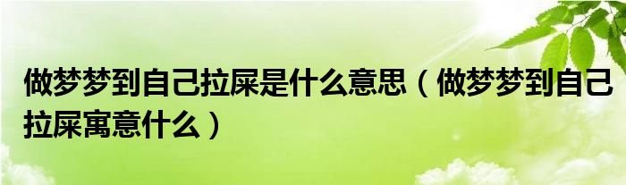 大家好,伊人来为大家解答以上问题。做梦梦到自己拉屎是什么意思,做梦梦到自己拉屎寓意什么很多人还不知道,现在让我们一起来看看吧!