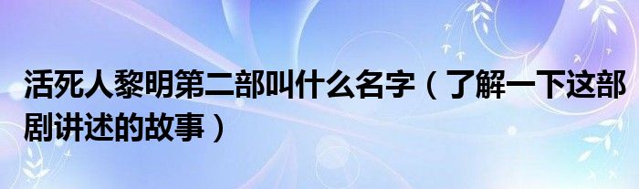 大家好,伊人来为大家解答以上问题。活死人黎明第二部叫什么名字,了解一下这部剧讲述的故事很多人还不知道,现在让我们一起来看看吧!