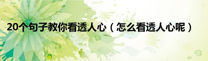 大家好,伊人来为大家解答以上问题。20个句子教你看透人心,怎么看透人心呢很多人还不知道,现在让我们一起来看看吧!