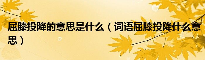 大家好,伊人来为大家解答以上问题。屈膝投降的意思是什么,词语屈膝投降什么意思很多人还不知道,现在让我们一起来看看吧!