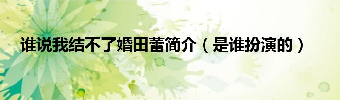 大家好,伊人来为大家解答以上问题。谁说我结不了婚田蕾简介,是谁扮演的很多人还不知道,现在让我们一起来看看吧!