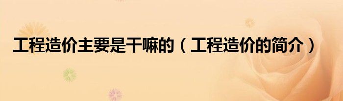 大家好,伊人来为大家解答以上问题。工程造价主要是干嘛的,工程造价的简介很多人还不知道,现在让我们一起来看看吧!
