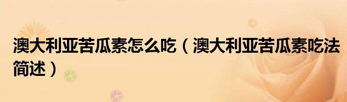 大家好,伊人来为大家解答以上问题。澳大利亚苦瓜素怎么吃,澳大利亚苦瓜素吃法简述很多人还不知道,现在让我们一起来看看吧!