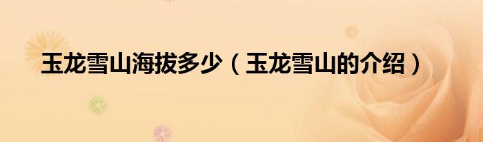 大家好,伊人来为大家解答以上问题。玉龙雪山海拔多少,玉龙雪山的介绍很多人还不知道,现在让我们一起来看看吧!