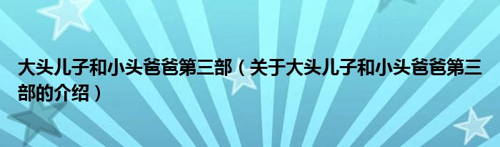 大家好,小新来为大家解答以上的问题。大头儿子和小头爸爸第三部,关于大头儿子和小头爸爸第三部的介绍很多人还不知道,现在让我们一起来看看吧!