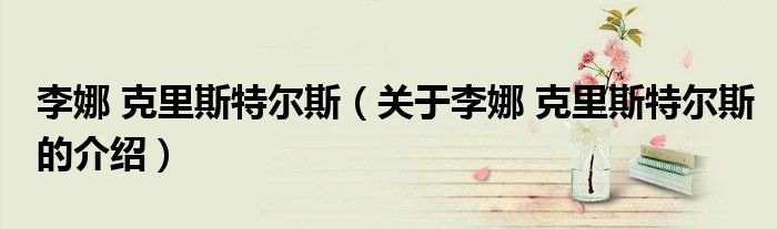 大家好,小新来为大家解答以上的问题。李娜 克里斯特尔斯,关于李娜 克里斯特尔斯的介绍很多人还不知道,现在让我们一起来看看吧!