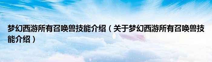 大家好,伊人来为大家解答以上问题。梦幻西游所有召唤兽技能介绍,关于梦幻西游所有召唤兽技能介绍很多人还不知道,现在让我们一起来看看吧!
