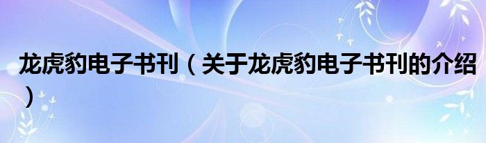 大家好,小新来为大家解答以上的问题。龙虎豹电子书刊,关于龙虎豹电子书刊的介绍很多人还不知道,现在让我们一起来看看吧!