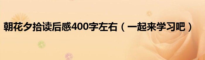 大家好,伊人来为大家解答以上问题。朝花夕拾读后感400字左右,一起来学习吧很多人还不知道,现在让我们一起来看看吧!