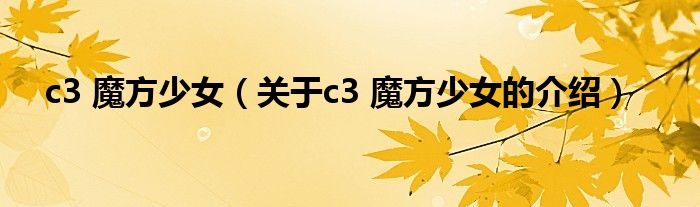 大家好,小新来为大家解答以上的问题。c3 魔方少女,关于c3 魔方少女的介绍很多人还不知道,现在让我们一起来看看吧!