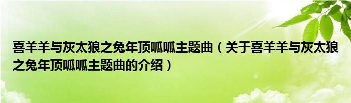 大家好,小新来为大家解答以上的问题。喜羊羊与灰太狼之兔年顶呱呱主题曲,关于喜羊羊与灰太狼之兔年顶呱呱主题曲的介绍很多人还不知道,现在让我们一起来看看吧!