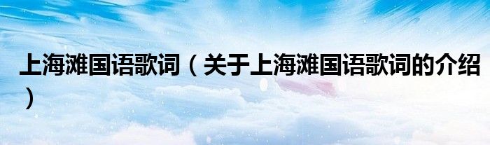大家好,小新来为大家解答以上的问题。上海滩国语歌词,关于上海滩国语歌词的介绍很多人还不知道,现在让我们一起来看看吧!