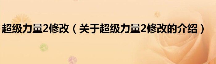 大家好,小新来为大家解答以上的问题。超级力量2修改,关于超级力量2修改的介绍很多人还不知道,现在让我们一起来看看吧!