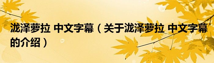 大家好,小新来为大家解答以上的问题。泷泽萝拉 中文字幕,关于泷泽萝拉 中文字幕的介绍很多人还不知道,现在让我们一起来看看吧!