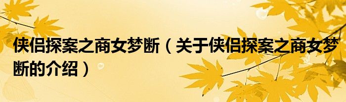 大家好,小新来为大家解答以上的问题。侠侣探案之商女梦断,关于侠侣探案之商女梦断的介绍很多人还不知道,现在让我们一起来看看吧!