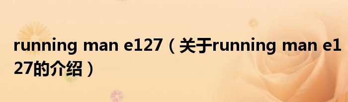 大家好,小新来为大家解答以上的问题。running man e127,关于running man e127的介绍很多人还不知道,现在让我们一起来看看吧!