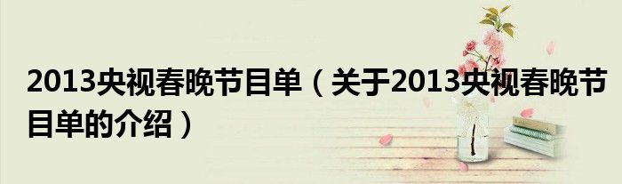 大家好,小新来为大家解答以上的问题。2013央视春晚节目单,关于2013央视春晚节目单的介绍很多人还不知道,现在让我们一起来看看吧!