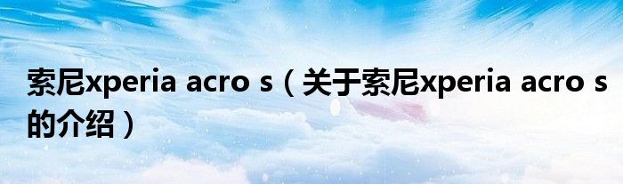 大家好,小新来为大家解答以上的问题。索尼xperia acro s,关于索尼xperia acro s的介绍很多人还不知道,现在让我们一起来看看吧!