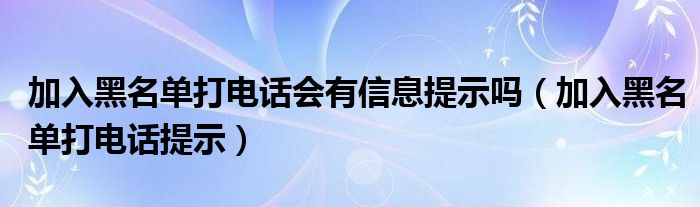 大家好,小育来为大家解答以上问题。加入黑名单打电话会有信息提示吗,加入黑名单打电话提示很多人还不知道,现在让我们一起来看看吧!