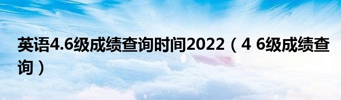 大家好,小育来为大家解答以上问题。英语4.6级成绩查询时间2022,4 6级成绩查询很多人还不知道,现在让我们一起来看看吧!