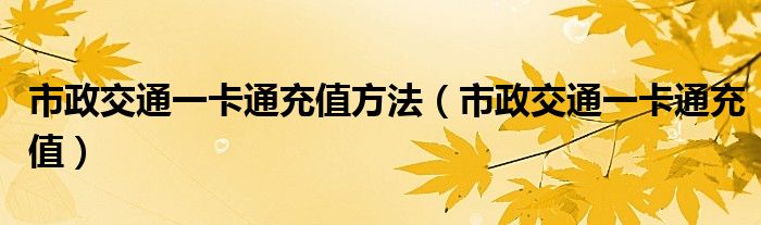 大家好,小育来为大家解答以上问题。市政交通一卡通充值方法,市政交通一卡通充值很多人还不知道,现在让我们一起来看看吧!