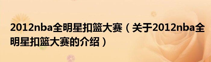 大家好,小新来为大家解答以上的问题。2012nba全明星扣篮大赛,关于2012nba全明星扣篮大赛的介绍很多人还不知道,现在让我们一起来看看吧!