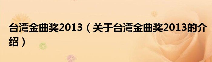 大家好,小新来为大家解答以上的问题。台湾金曲奖2013,关于台湾金曲奖2013的介绍很多人还不知道,现在让我们一起来看看吧!