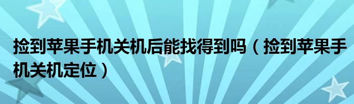 大家好,小育来为大家解答以上问题。捡到苹果手机关机后能找得到吗,捡到苹果手机关机定位很多人还不知道,现在让我们一起来看看吧!