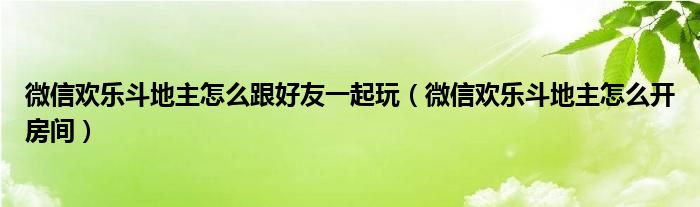 大家好,小育来为大家解答以上问题。微信欢乐斗地主怎么跟好友一起玩,微信欢乐斗地主怎么开房间很多人还不知道,现在让我们一起来看看吧!