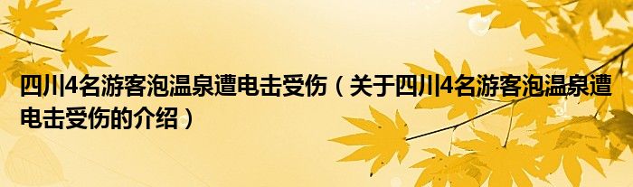 大家好,小新来为大家解答以上的问题。四川4名游客泡温泉遭电击受伤,关于四川4名游客泡温泉遭电击受伤的介绍很多人还不知道,现在让我们一起来看看吧!