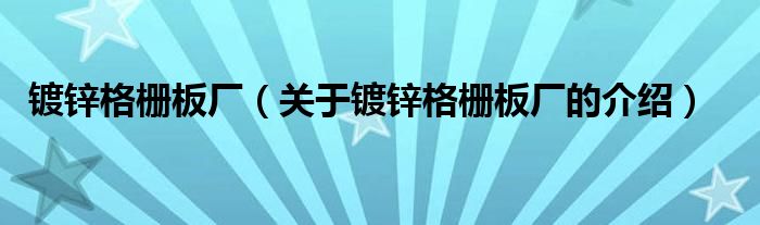 大家好,小新来为大家解答以上的问题。镀锌格栅板厂,关于镀锌格栅板厂的介绍很多人还不知道,现在让我们一起来看看吧!