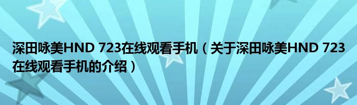 大家好,小新来为大家解答以上的问题。深田咏美HND 723在线观看手机,关于深田咏美HND 723在线观看手机的介绍很多人还不知道,现在让我们一起来看看吧!