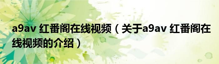 大家好,小新来为大家解答以上的问题。a9av 红番阁在线视频,关于a9av 红番阁在线视频的介绍很多人还不知道,现在让我们一起来看看吧!
