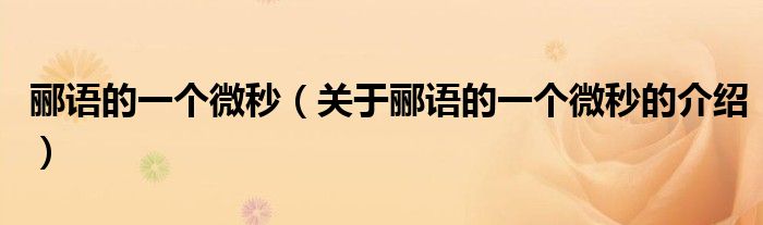 大家好,小新来为大家解答以上的问题。郦语的一个微秒,关于郦语的一个微秒的介绍很多人还不知道,现在让我们一起来看看吧!
